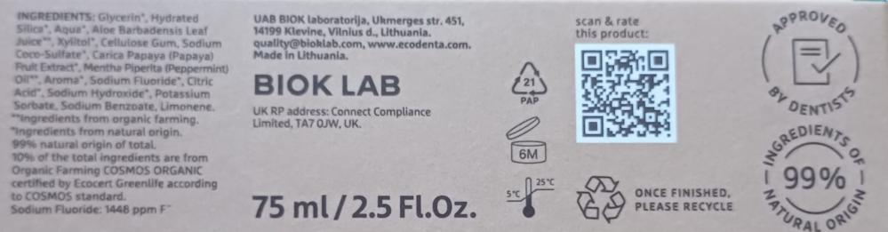 This certified organic, refreshingly fruity formula with all natural papaya extract, aloe vera juice, xylitol and peppermint essential oil removes the existing, and prevents new plaque and tartar formation. That means it naturally whitens your teeth. Contains sodium fluoride.