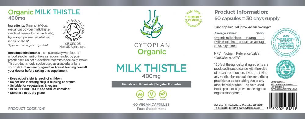 Milk Thistle has been improved to a new organic version. Organic Milk Thistle (Silybum marianum) 400mg capsules contain the whole herb in a powder form.