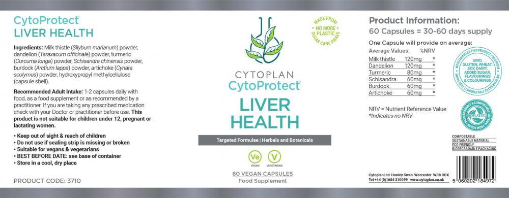 CytoProtect® Liver Health is a botanical formula comprising of milk thistle, dandelion, turmeric, schisandra, burdock and artichoke.